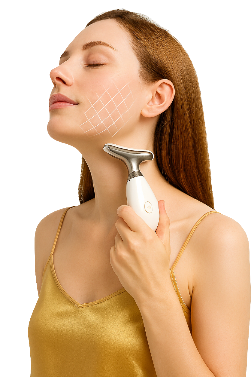 4️⃣ Masuj szyję – przesuwaj urządzenie od dołu szyi ku górze, aby poprawić jędrność skóry.